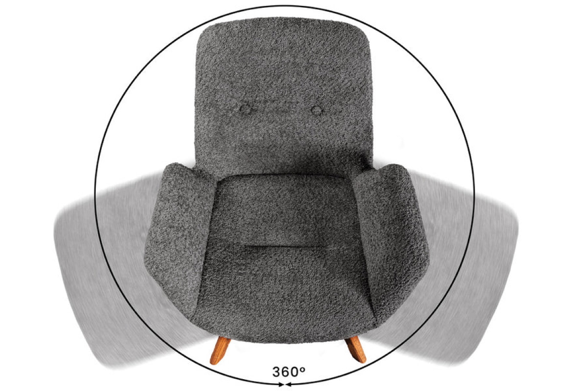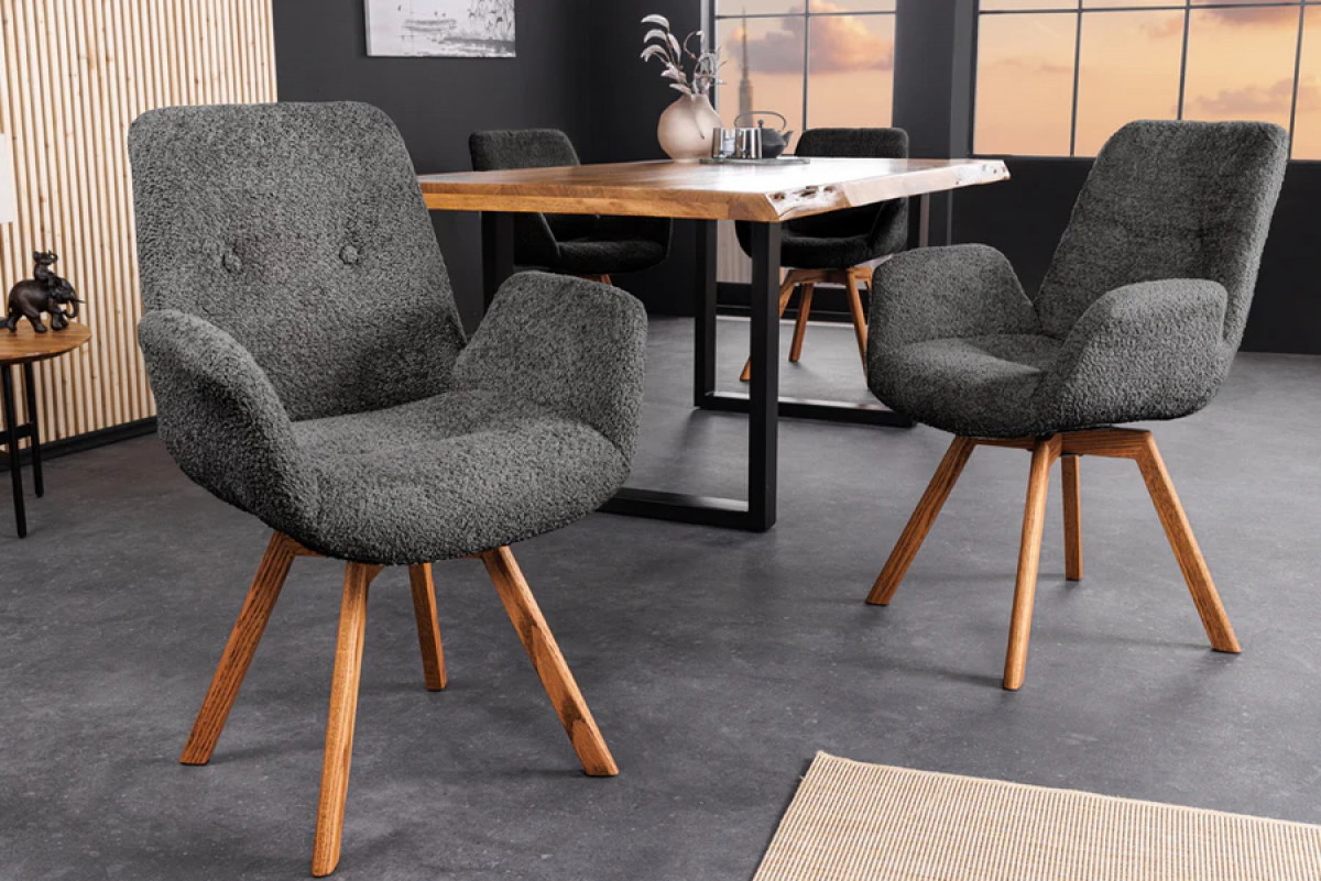 A 360°-ban forgatható ülőrész maximális rugalmasságot kínál, míg a tömör tölgyfa lábak természetes szépsége és stabilitása időtlen eleganciát sugároz. A szék finoman ívelt formái, lekerekített vonalai és neutrális színvilága harmonikusan illeszkednek a modern, skandináv és minimalista enteriőrökbe.