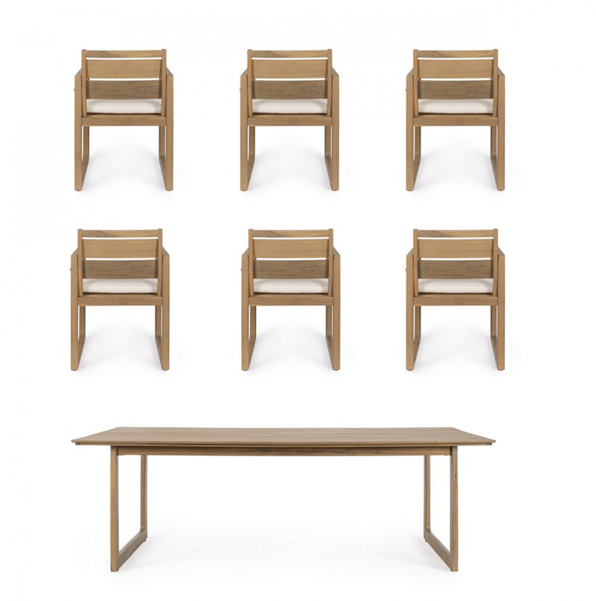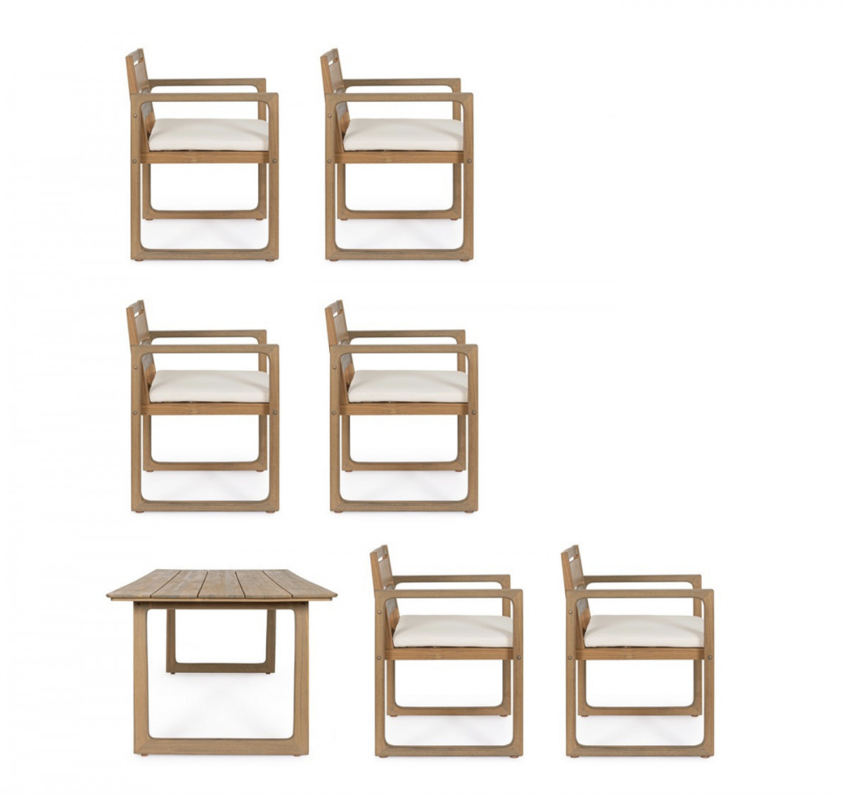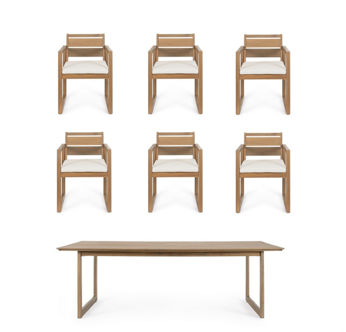 A szett 6db széket, és 1db étkezőasztalt tartalmaz
