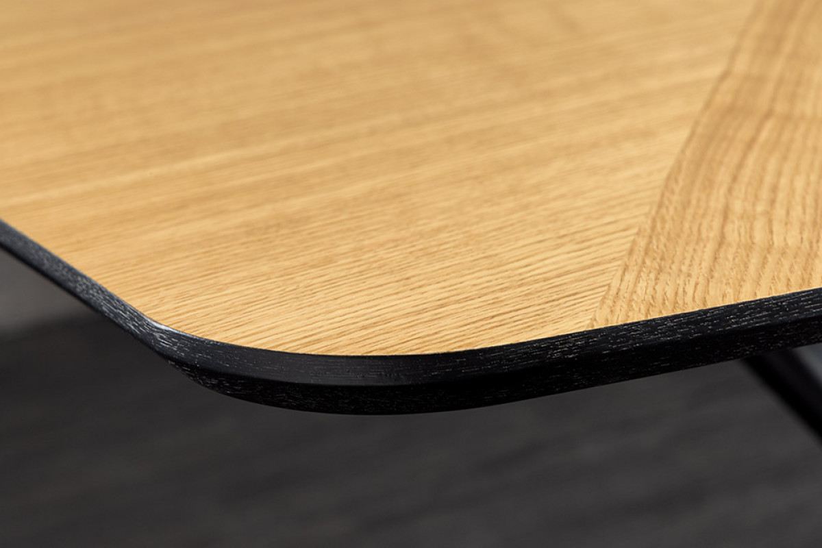 A markáns matt fekete fém lábak modern kontrasztot alkotnak a fa természetes tónusaival, egyszerre biztosítva stabilitást és karakteres megjelenést. A részletekben rejlő precizitás, a gondos megmunkálás és az arányos formavilág teszik a GRANDEZZA asztalt a tökéletes központi elemmé bármely elegáns otthonban.