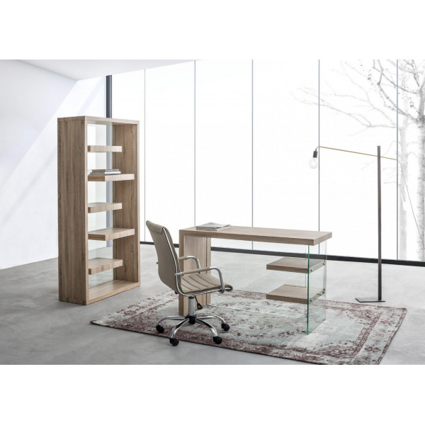 LOMANTE modern üveg íróasztal - tölgy/fehér