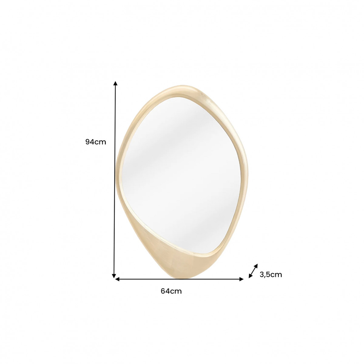 Az ORGANIC fali tükör lágy, szabálytalan formájával a modern enteriőrök különleges dekorációs eleme. Az organikus kontúr természetes hatást kelt a falon, miközben elegáns, szoborszerű megjelenést ad a térnek. A finom arany színű keret kifinomult kontrasztot teremt, így a tükör egyszerre dekoratív és időtálló design-darab.