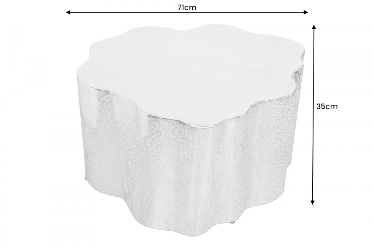 A SECTION dohányzóasztal organikus formái különleges látványt nyújtanak. A fémből készült asztal felületét bevésett minták díszítik, mely elegánsan töri meg a fényt. Varázslatos kiegészítője lehet bármely helyiségnek. Minden termék egyedi, kézzel készített darab.