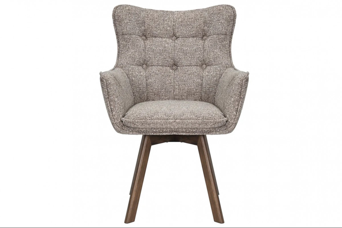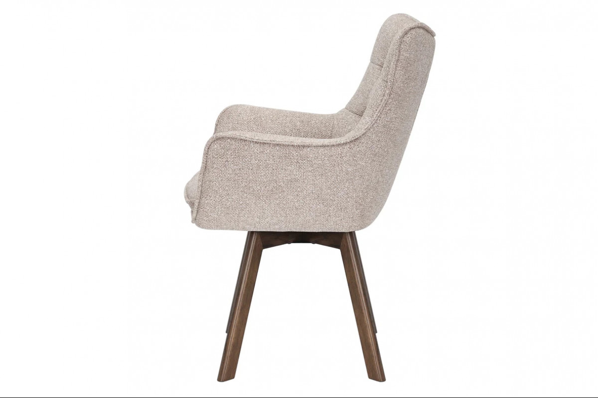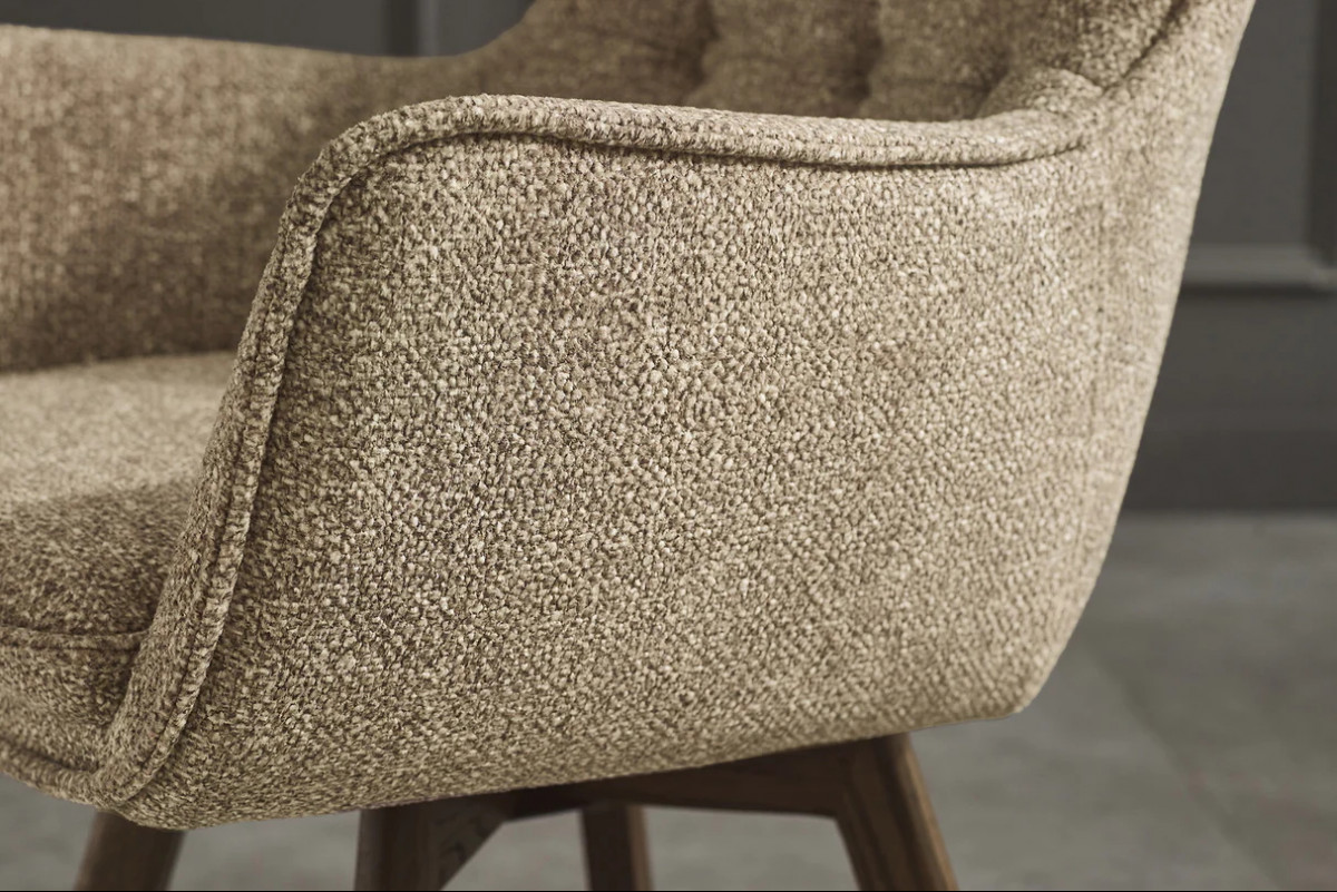 A 360°-ban forgatható ülőrész maximális rugalmasságot kínál, míg a tömör tölgyfa lábak természetes szépsége és stabilitása időtlen eleganciát sugároz. A szék finoman ívelt formái, lekerekített vonalai és neutrális színvilága harmonikusan illeszkednek a modern, skandináv és minimalista enteriőrökbe.