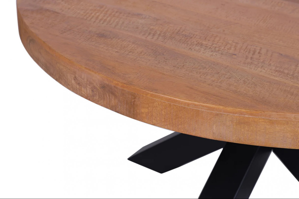 Az THOR asztal meleg, természetes atmoszférát teremt étkezőjében. A masszív, vastag mangófa lap meleg tónusai és jellegzetes erezete minden darabot egyedivé varázsolnak, miközben a kifinomult felületkezelés kiemeli a fa természetes szépségét. A kerek forma lágy, barátságos hangulatot kölcsönöz.