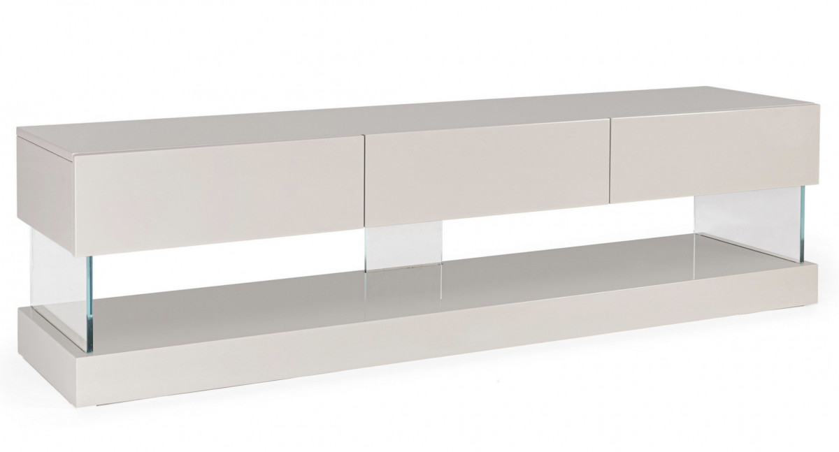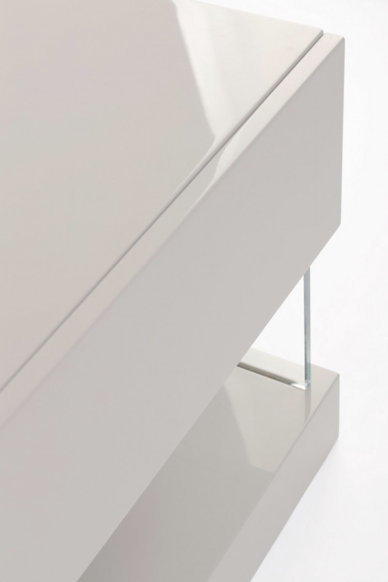 A VISTA TV-szekrény a letisztult formavilágot és a kifinomult anyaghasználatot ötvözi egy igazán különleges megoldással. A felső elemet három üveg tartóelem rögzíti– ez a részlet könnyed, szinte lebegő hatást kölcsönöz a bútornak, és egyedivé teszi az összhatást.